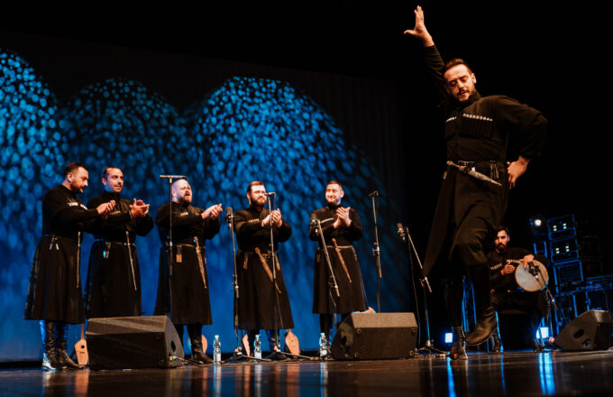 In Iberi’s harmonies, the solemn meets the extroverted. From work songs to hymns and historic ballads, the choir conjures up an intense and heartfelt atmosphere, dressed in their signature long black coats and boots. Known for their polyphonic singing with unconventional, improvised harmonies, Iberi’s music is a meeting of stratospheric falsettos and bass notes so deep they seem to rise from the grave. Drama, ecstasy, and tenderness resonate in every note they sing and in every step of their choreography.